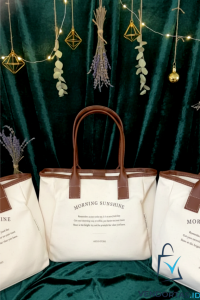 Ceritakan konsep totebag kanvas kombinasi kulit sintetis yang ingin kamu produksi—baik untuk brand fashion, UMKM, event, maupun kebutuhan perusahaan.
